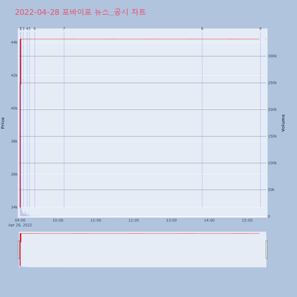 | 6 | [특징주] 포바이포, 상장 첫날 '따상' [파이낸셜뉴스]포바이포가 코스닥 시장 상장 첫날 '따상 | 파이낸셜 | 포바이포 | 2022-04-28 09:23:15 |
