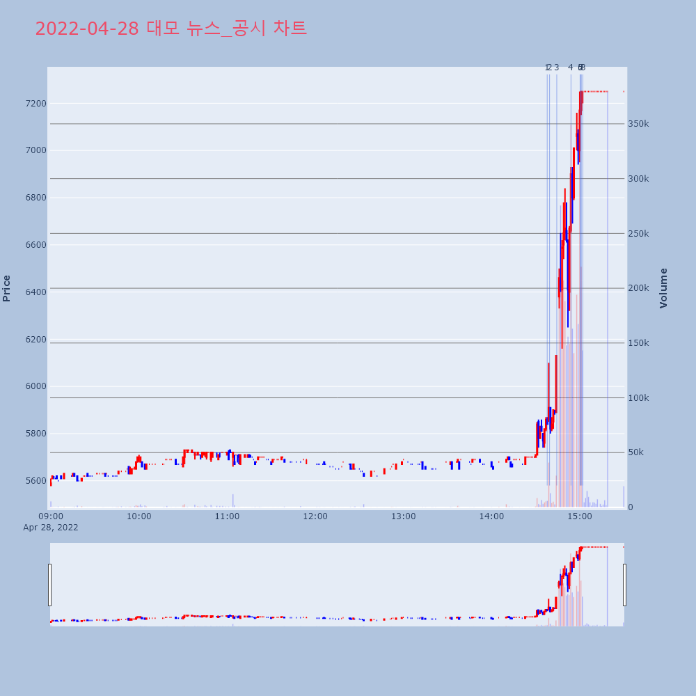 | 6 | [이시각 상한가] 대성에너지(▲3150) - 27일 오전 9시38분[이투데이/e2BOT 기자(e2bot@etoday.co | 이투데이 | 대성에너지 | 2022-04-27 09:52:03 |