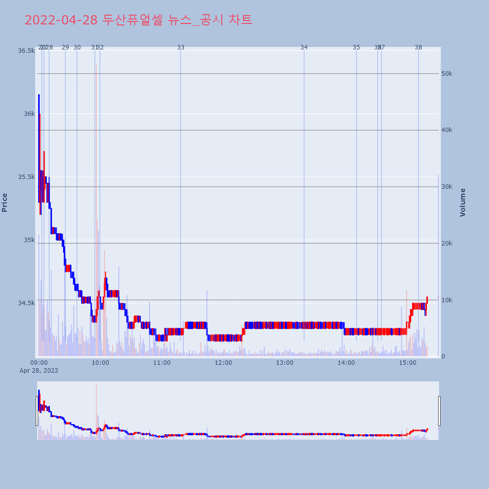 | 3 | 두산퓨얼셀 수주공시 - 연료전지 시스템 공급 계약 193억원 (매출액대비 504월 27일 두산퓨얼셀(336260)은 수주공시를 | 한경/증권 | 두산퓨얼셀 | 2022-04-27 10:10:25 |
