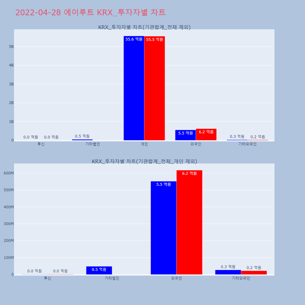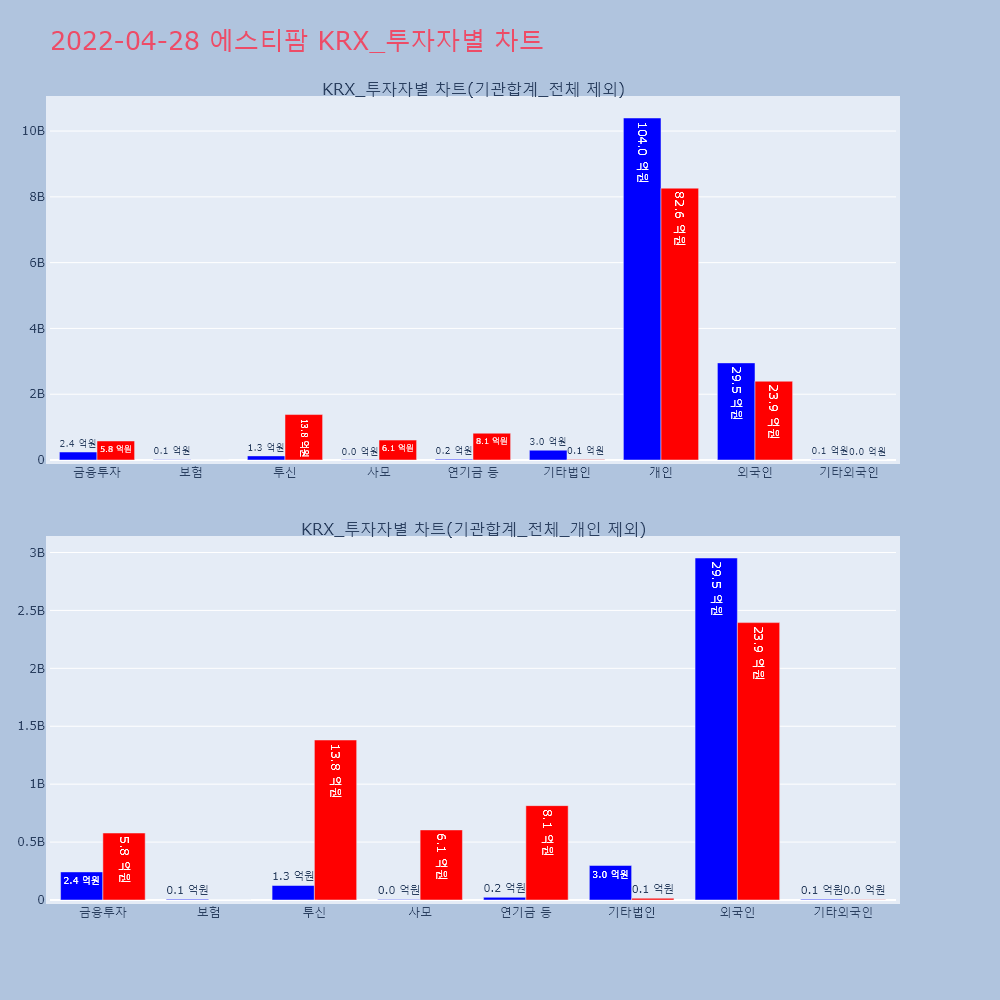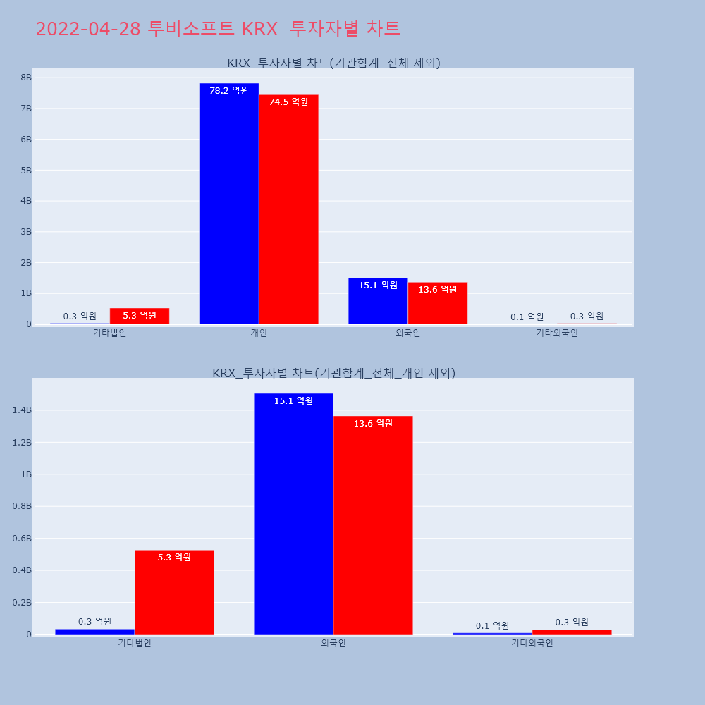 | 투자기관 | 거래량_매도 | 거래량_매수 | 거래량_순매수 | 거래대금_매도 | 거래대금_매수 | 거래대금_순매수 |