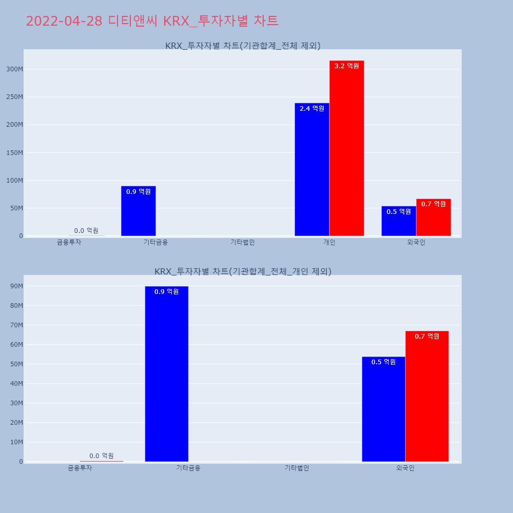 | 투자기관 | 거래량_매도 | 거래량_매수 | 거래량_순매수 | 거래대금_매도 | 거래대금_매수 | 거래대금_순매수 |