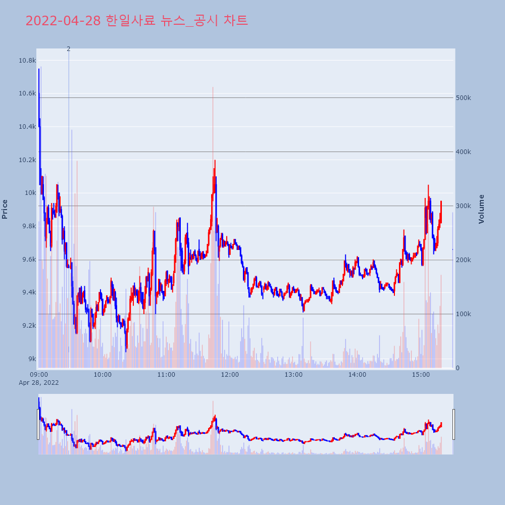 | 2 | 한일사료, -11.98% VI 발동한일사료(005860)가 VI가 발동했다. 전일 대비 | 조선경제 | 한일사료 | 2022-04-28 09:28:10 |