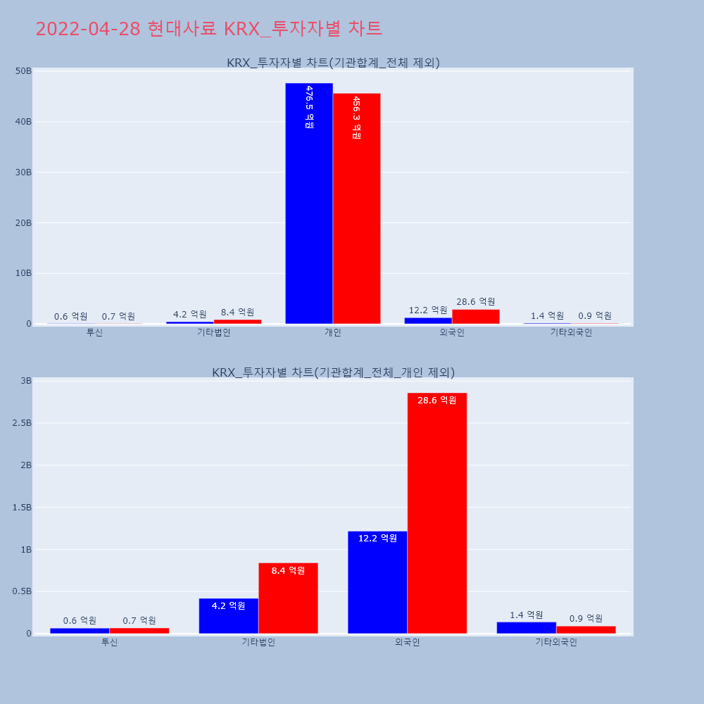 | 투자기관 | 거래량_매도 | 거래량_매수 | 거래량_순매수 | 거래대금_매도 | 거래대금_매수 | 거래대금_순매수 |