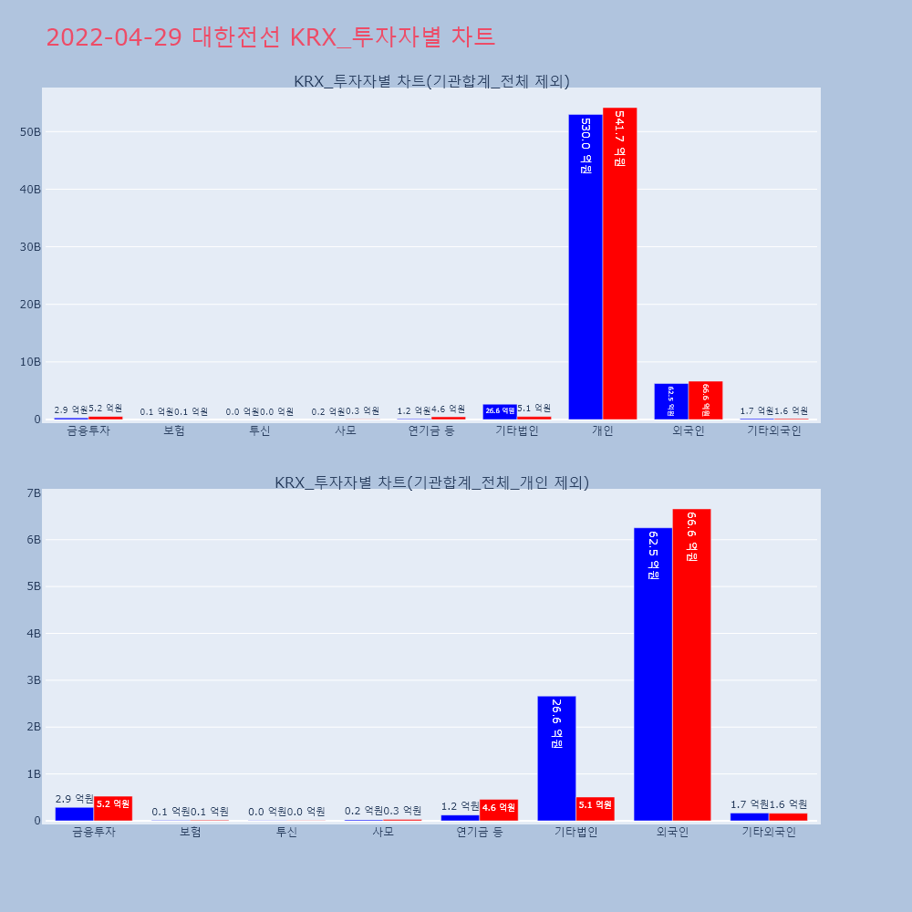 | 투자기관 | 거래량_매도 | 거래량_매수 | 거래량_순매수 | 거래대금_매도 | 거래대금_매수 | 거래대금_순매수 |