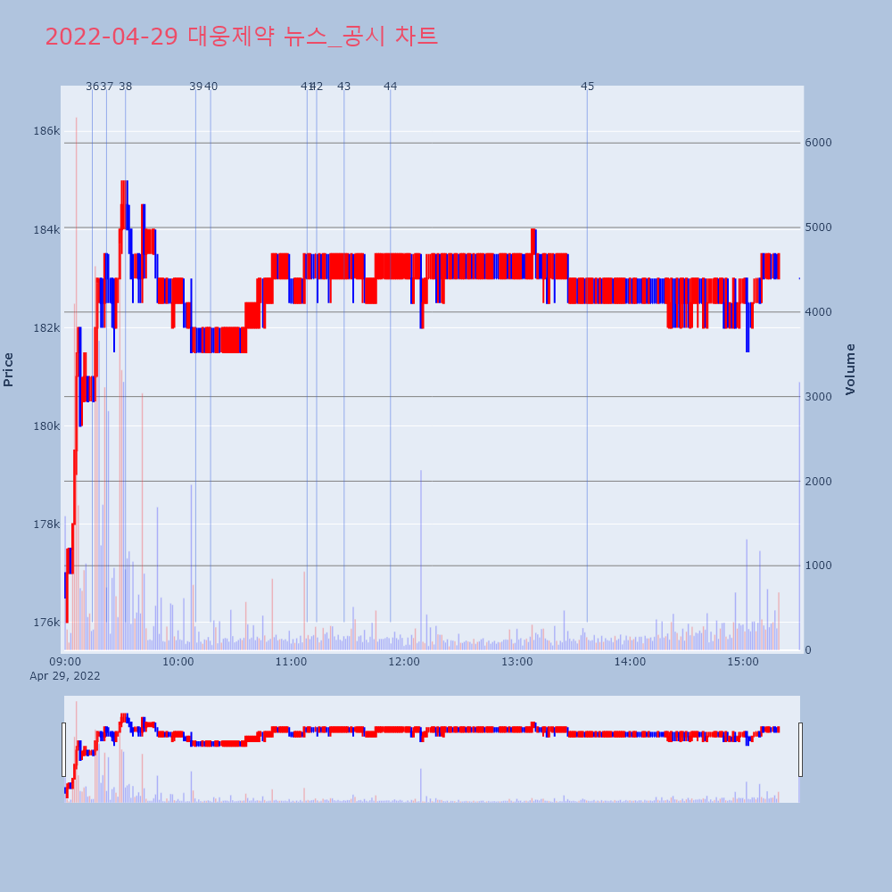 | 45 | [특징주] 대웅제약, 나보타 성장에 분기 사상최대 영업익 경신… 4%↑ 제목 : [특징주] 대웅제약, 나보타 성장에 분기 사상 | 인포스탁 | 대웅제약 | 2022-04-29 13:37:15 |