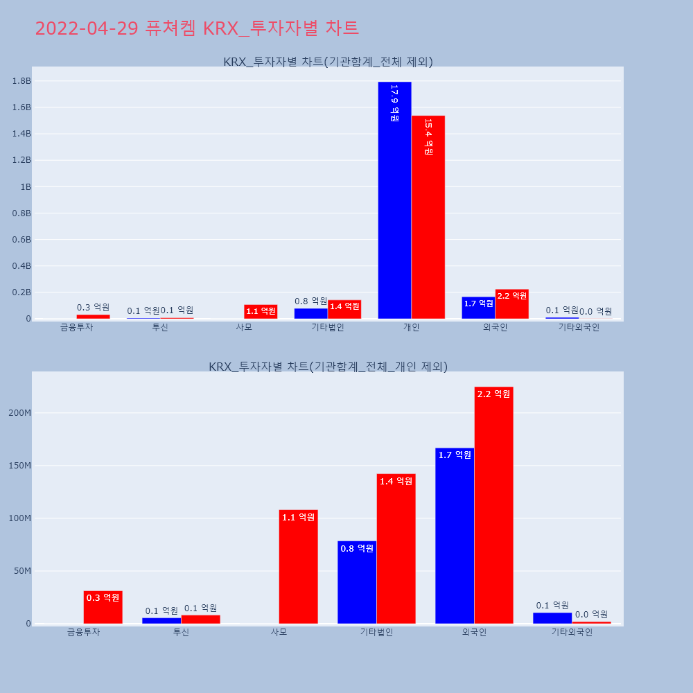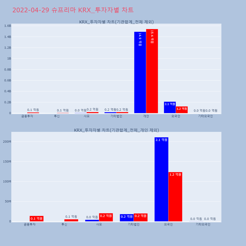 | 투자기관 | 거래량_매도 | 거래량_매수 | 거래량_순매수 | 거래대금_매도 | 거래대금_매수 | 거래대금_순매수 |
