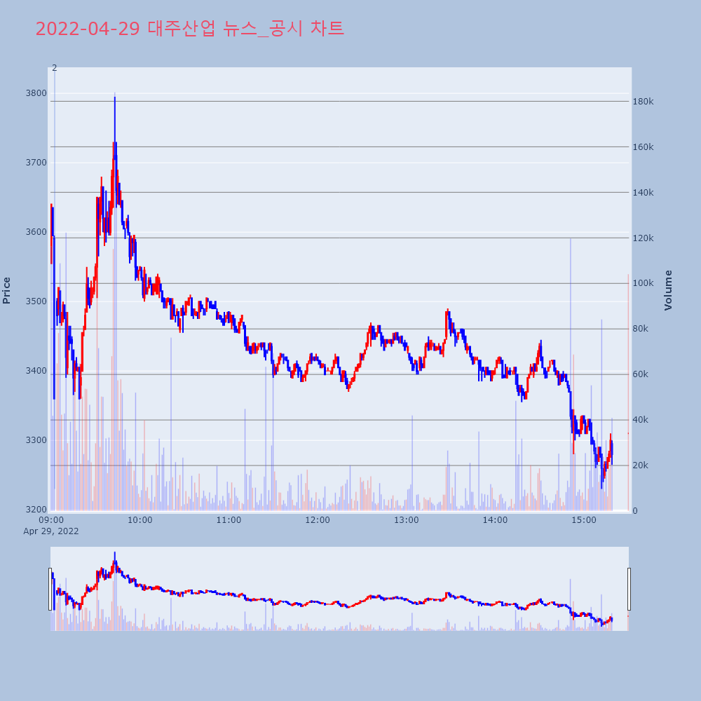 | 2 | 대주산업, -8.63% VI 발동대주산업(003310)이 VI가 발동했다. 전일 대비 | 조선경제 | 대주산업 | 2022-04-29 09:02:21 |