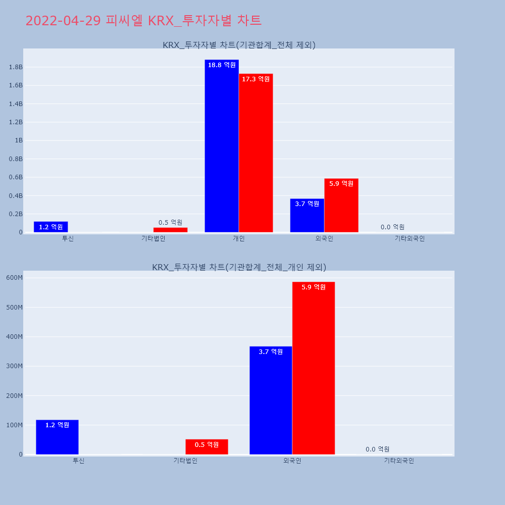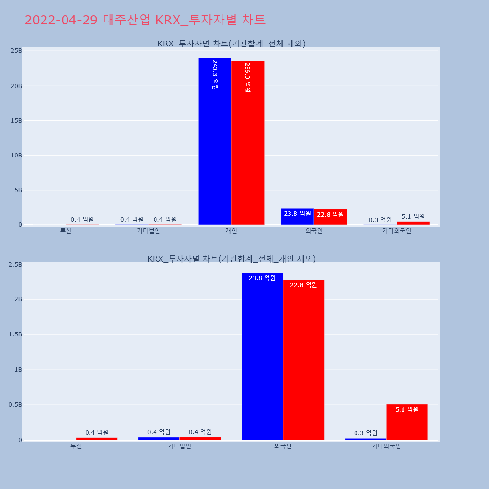 | 외국인 | 4,199,778 | 3,523,827 | -675,951 | 19,334,057,570 | 16,261,696,055 | -3,072,361,515 |