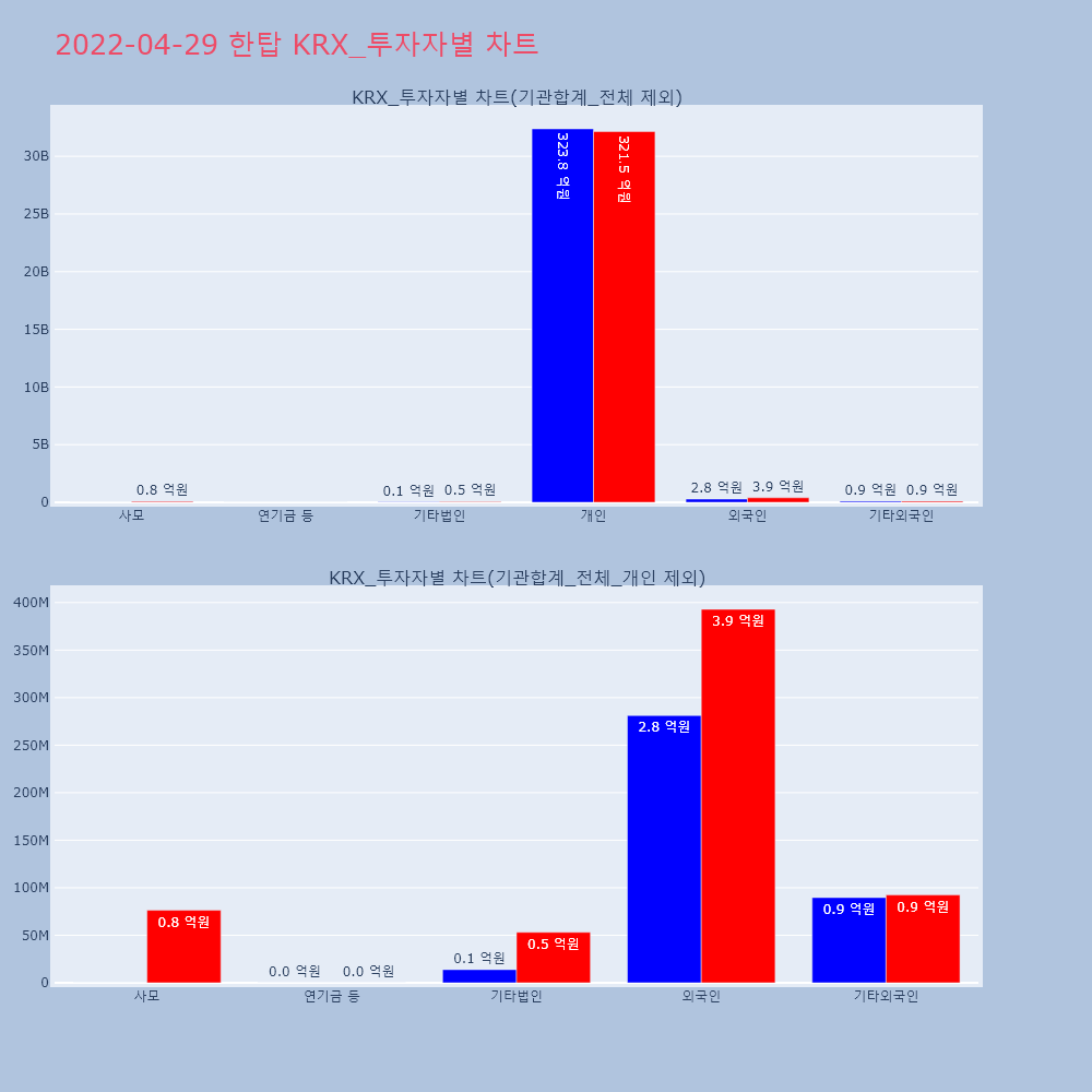 | 투자기관 | 거래량_매도 | 거래량_매수 | 거래량_순매수 | 거래대금_매도 | 거래대금_매수 | 거래대금_순매수 |