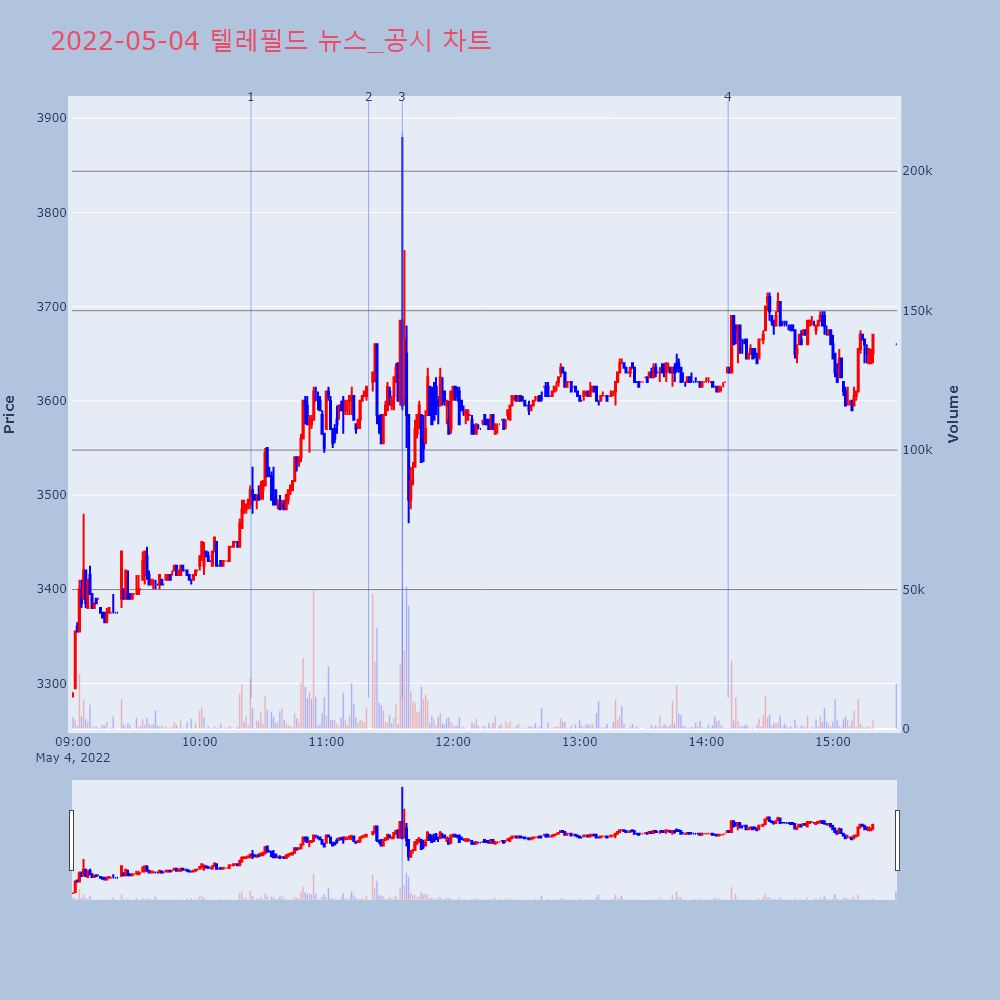 | 2 | 텔레필드, +9.88% VI 발동텔레필드(091440)가 VI가 발동했다. 전일 대비 | 조선경제 | 텔레필드 | 2022-05-04 11:20:01 |