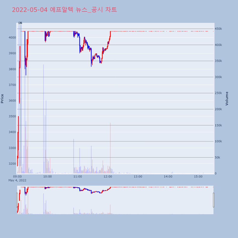 | 4 | 에프알텍, +29.90% 상한가에프알텍(073540)이 상한가를 기록했다. 전일 대비 | 조선경제 | 에프알텍 | 2022-05-04 09:07:12 |