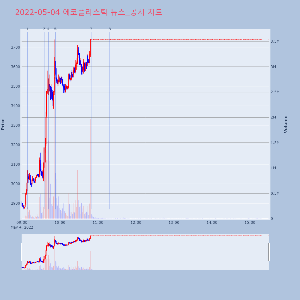 | 3 | 에코플라스틱, +10.59% VI 발동에코플라스틱(038110)이 VI가 발동했다. 전일 대 | 조선경제 | 에코플라스틱 | 2022-05-04 09:35:24 |