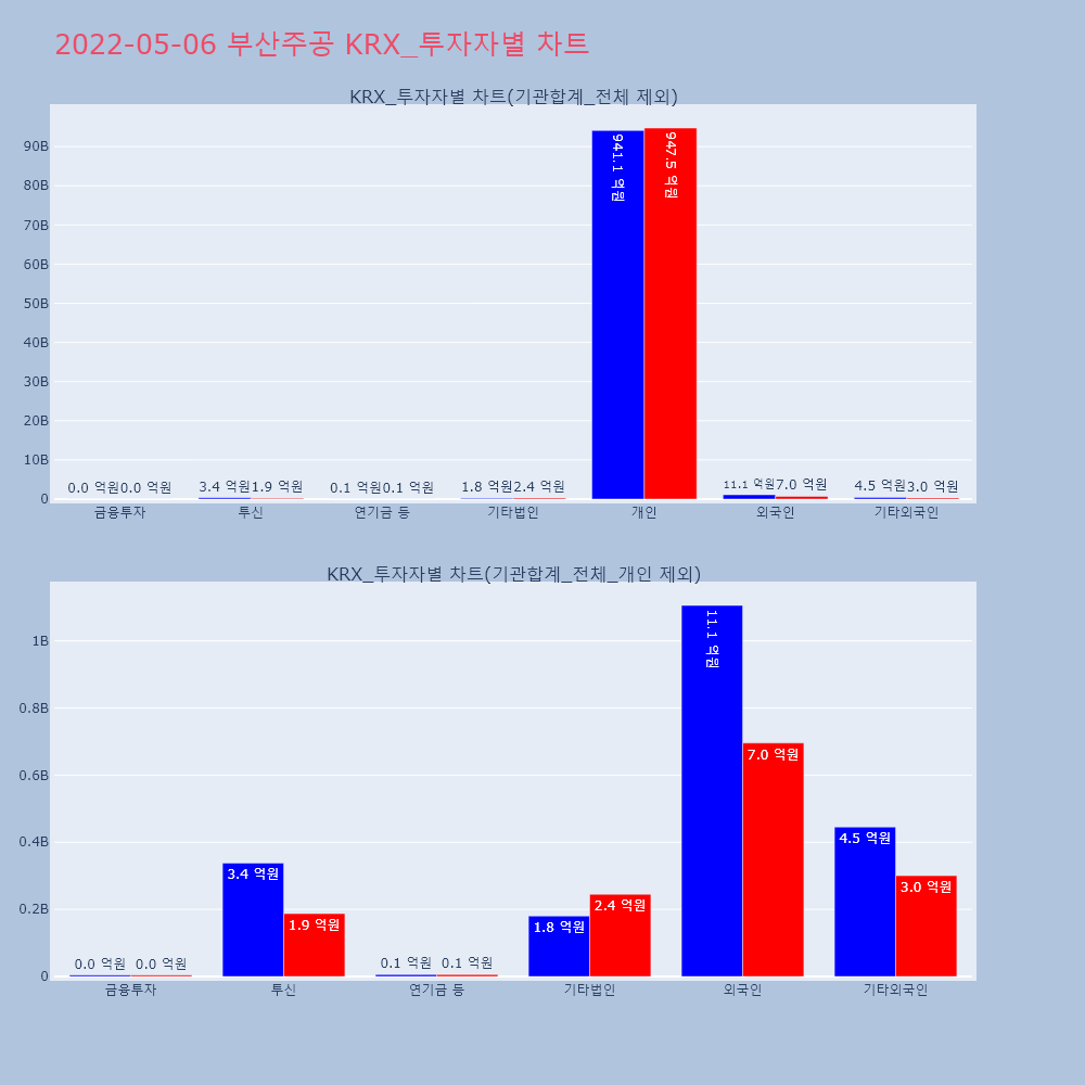 | 투자기관 | 거래량_매도 | 거래량_매수 | 거래량_순매수 | 거래대금_매도 | 거래대금_매수 | 거래대금_순매수 |