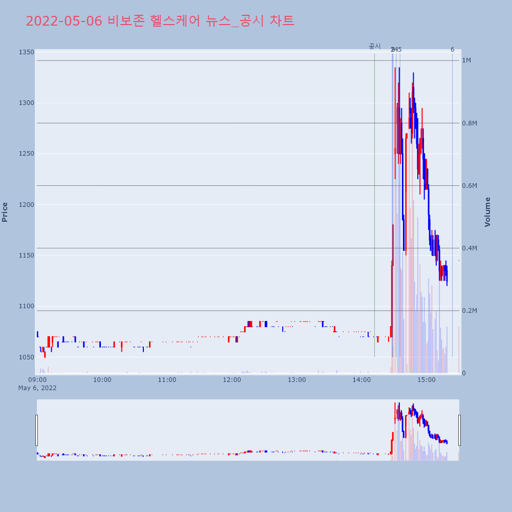 4 | 비보존 헬스케어(082800) 상승폭 확대 +16.74%, VI발동 제목 : 비보존 헬스케어(082800)상승폭 확대 +1 | 인포스탁 | 비보존 헬스케어 | 2022-05-06 14:32:01 |