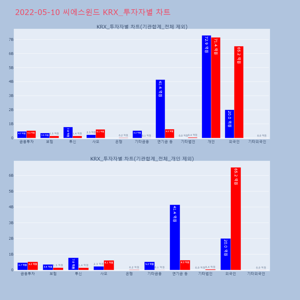 | 기관합계 | 126,653 | 40,450 | -86,203 | 6,489,951,100 | 2,072,650,300 | -4,417,300,800 |