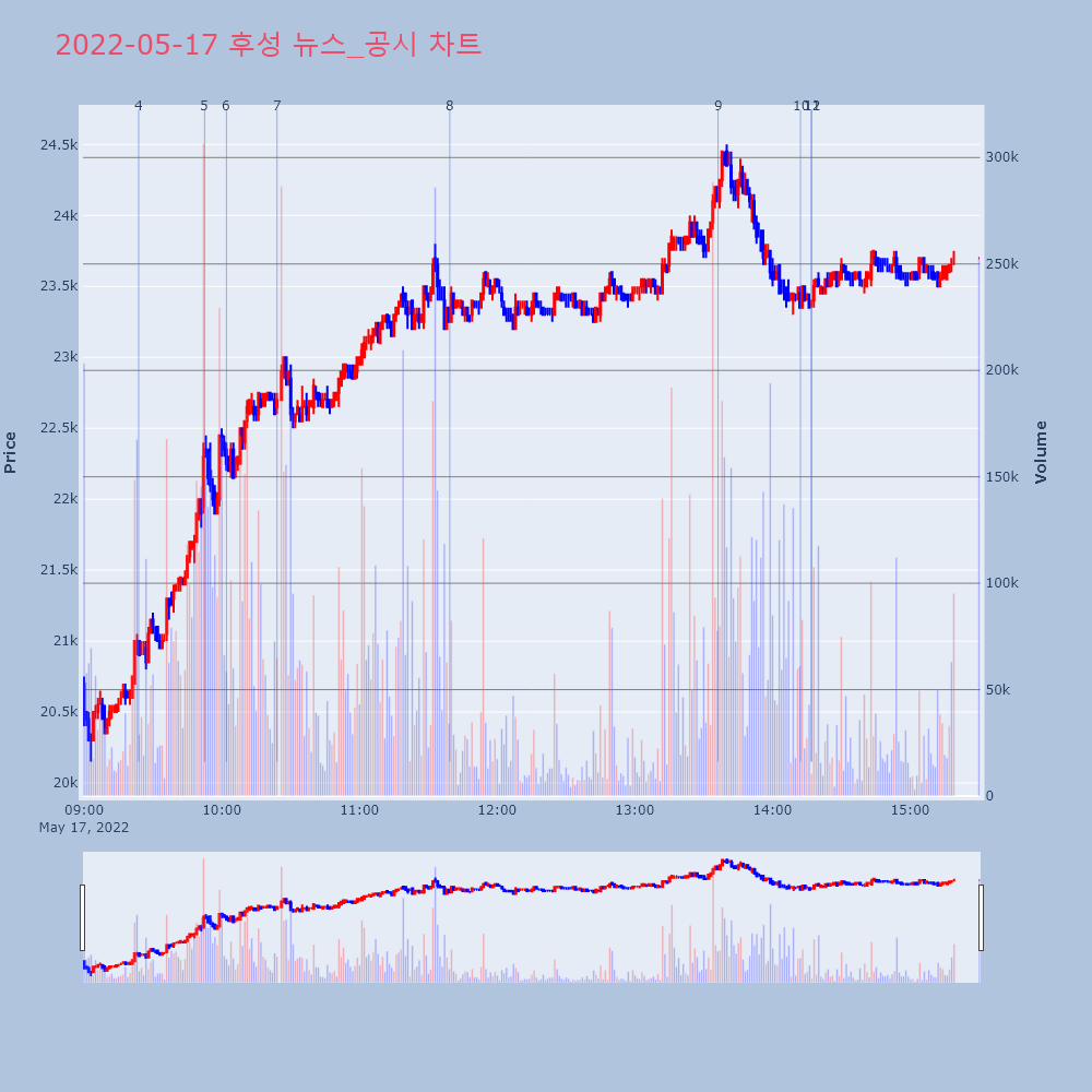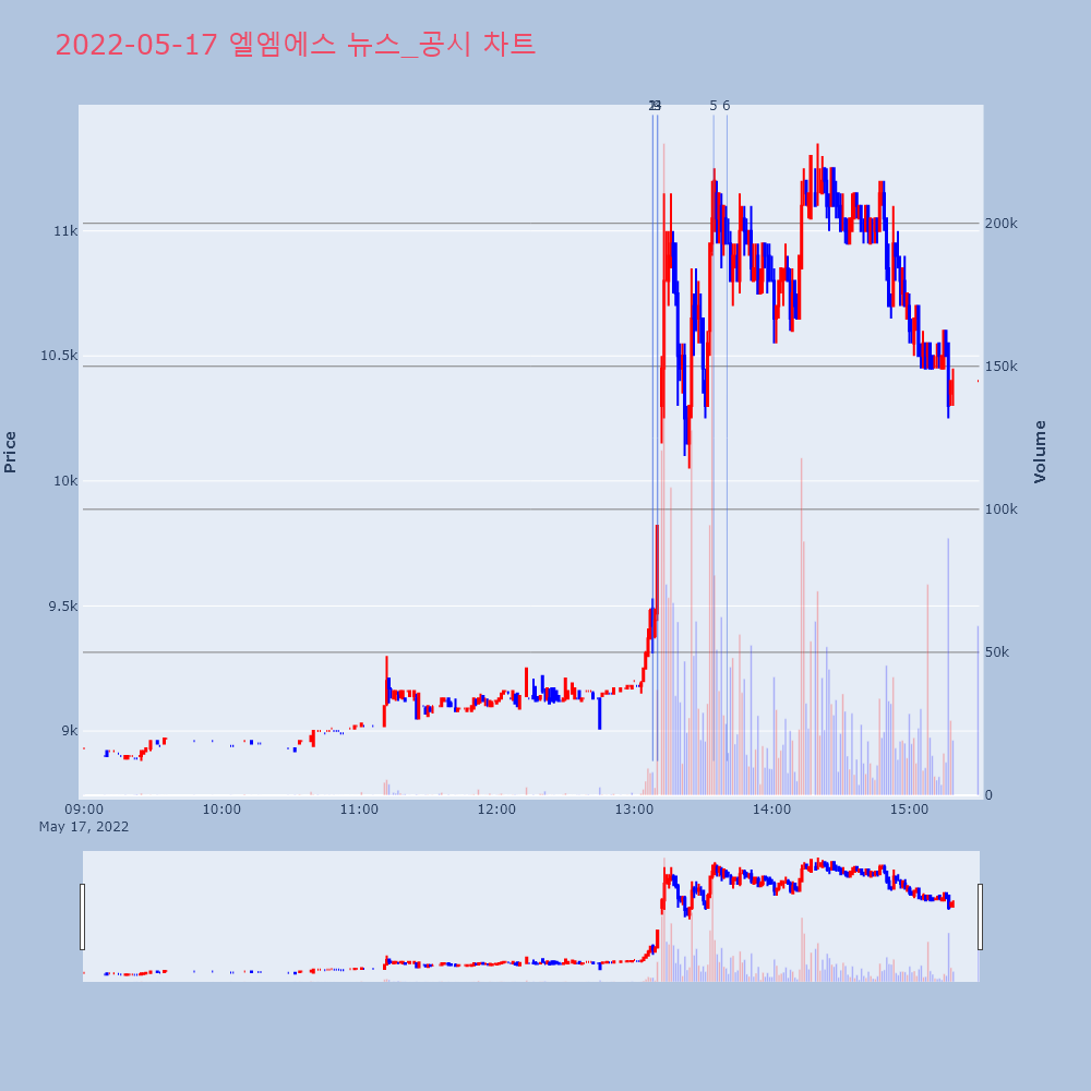 | 6 | [특징주] 대성산업, 희귀가스 '네온' 가격 22배 폭등에 강세 제목 : [특징주] 대성산업, 희귀가스 '네온' 가격 | 인포스탁 | 대성산업 | 2022-05-17 09:29:04 |