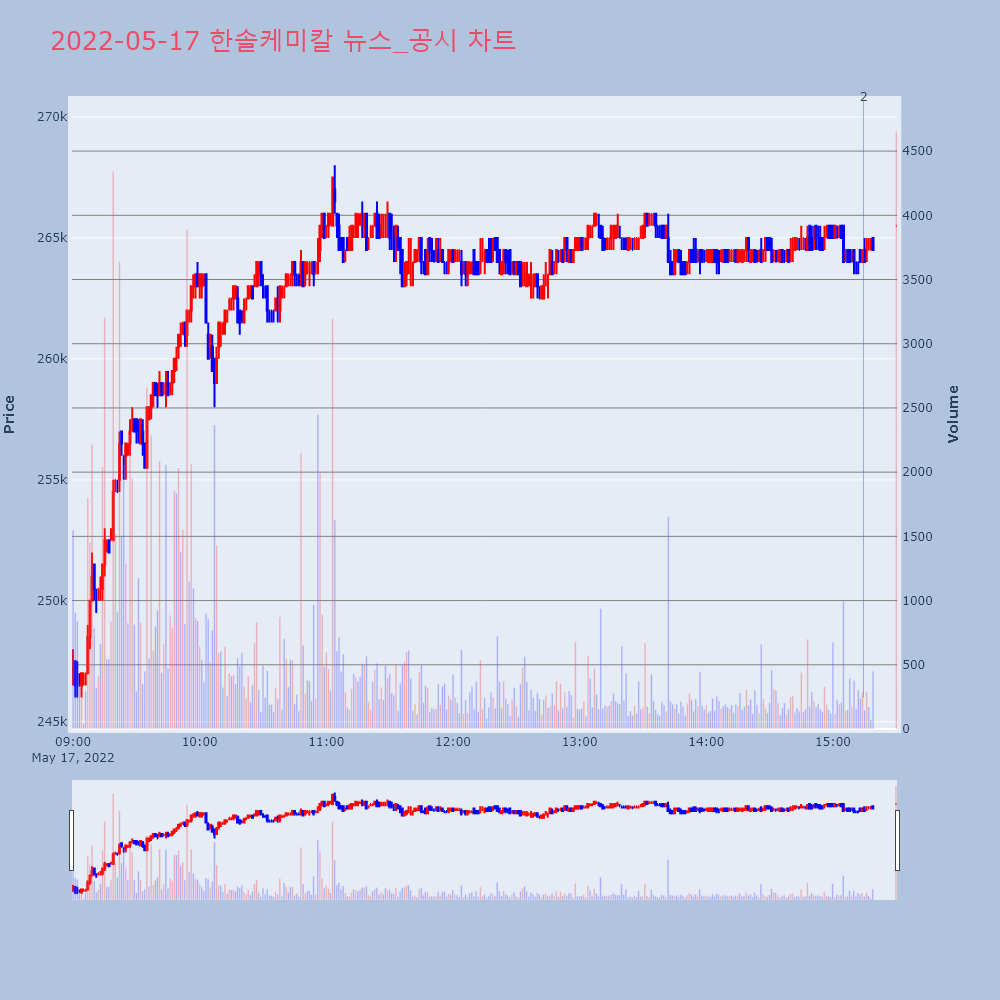 | 3 | [장중수급포착] 한솔케미칼, 기관 15일 연속 순매수행진... 주가 +9.03% [서울=뉴스핌] 로보뉴스 = 17일 11시 30분 현재 | 뉴스핌 | 한솔케미칼 | 2022-05-17 15:32:15 |
