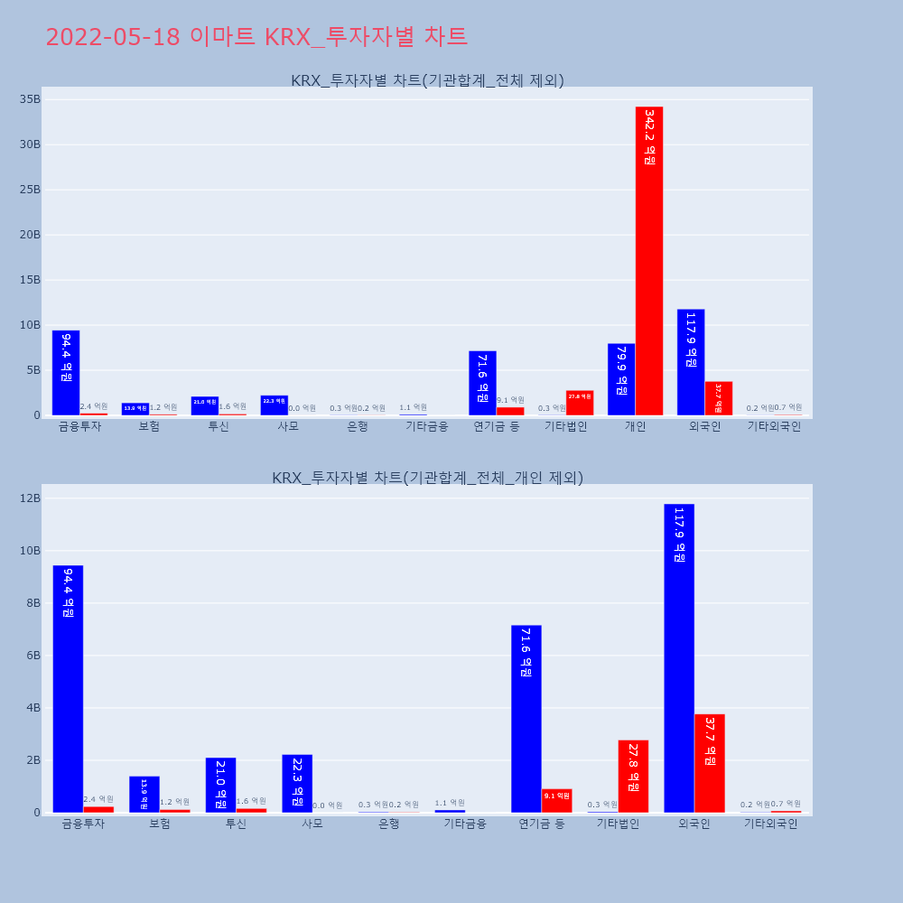 | 사모 | 18,516 | 31 | -18,485 | 2,225,737,500 | 3,811,500 | -2,221,926,000 |