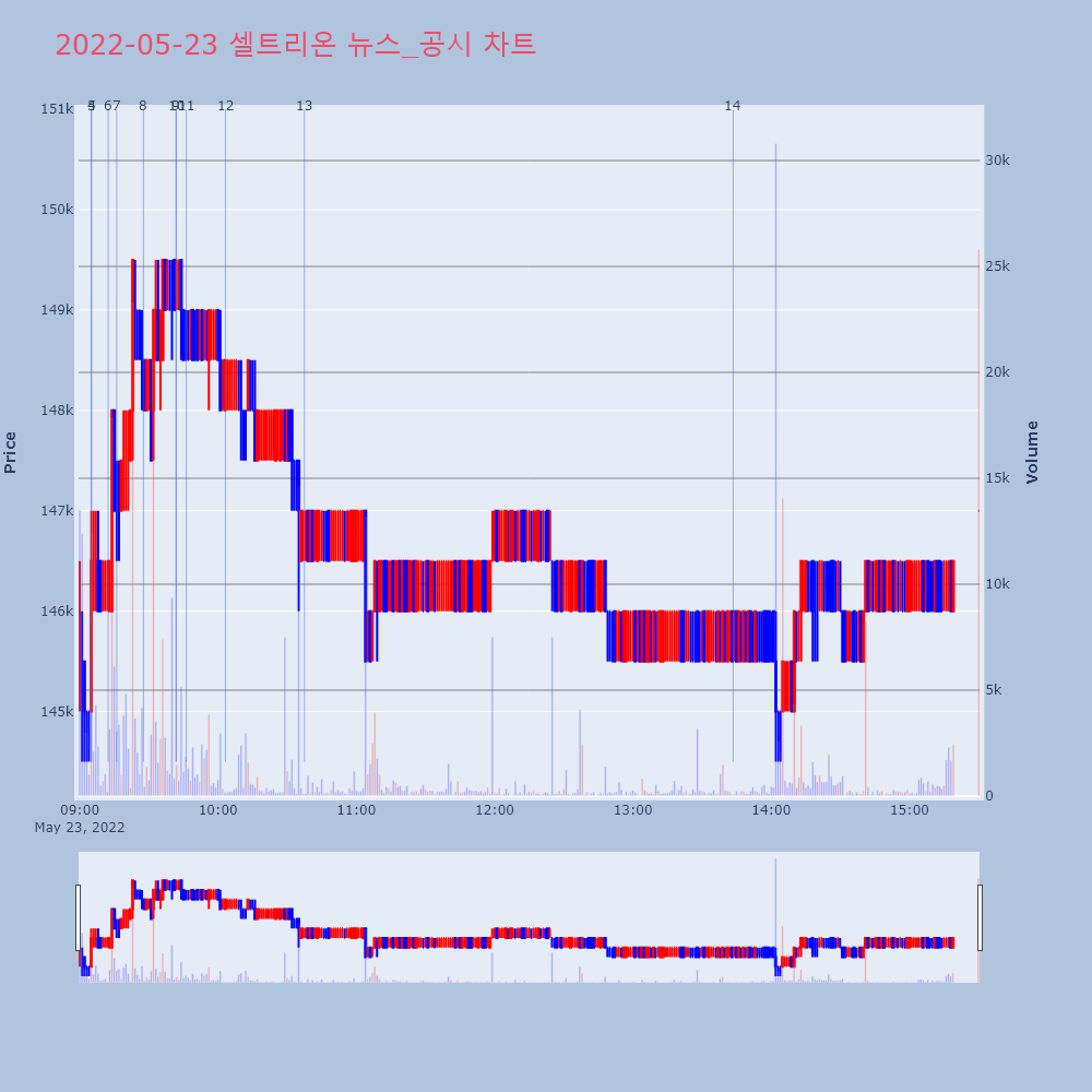 2022. 05. 23 특징주 세종메디칼 셀트리온 셀트리온제약 셀트리온헬스케어 솔브레인 스킨앤스킨 씨젠 아이진 앱클론 에스티큐브