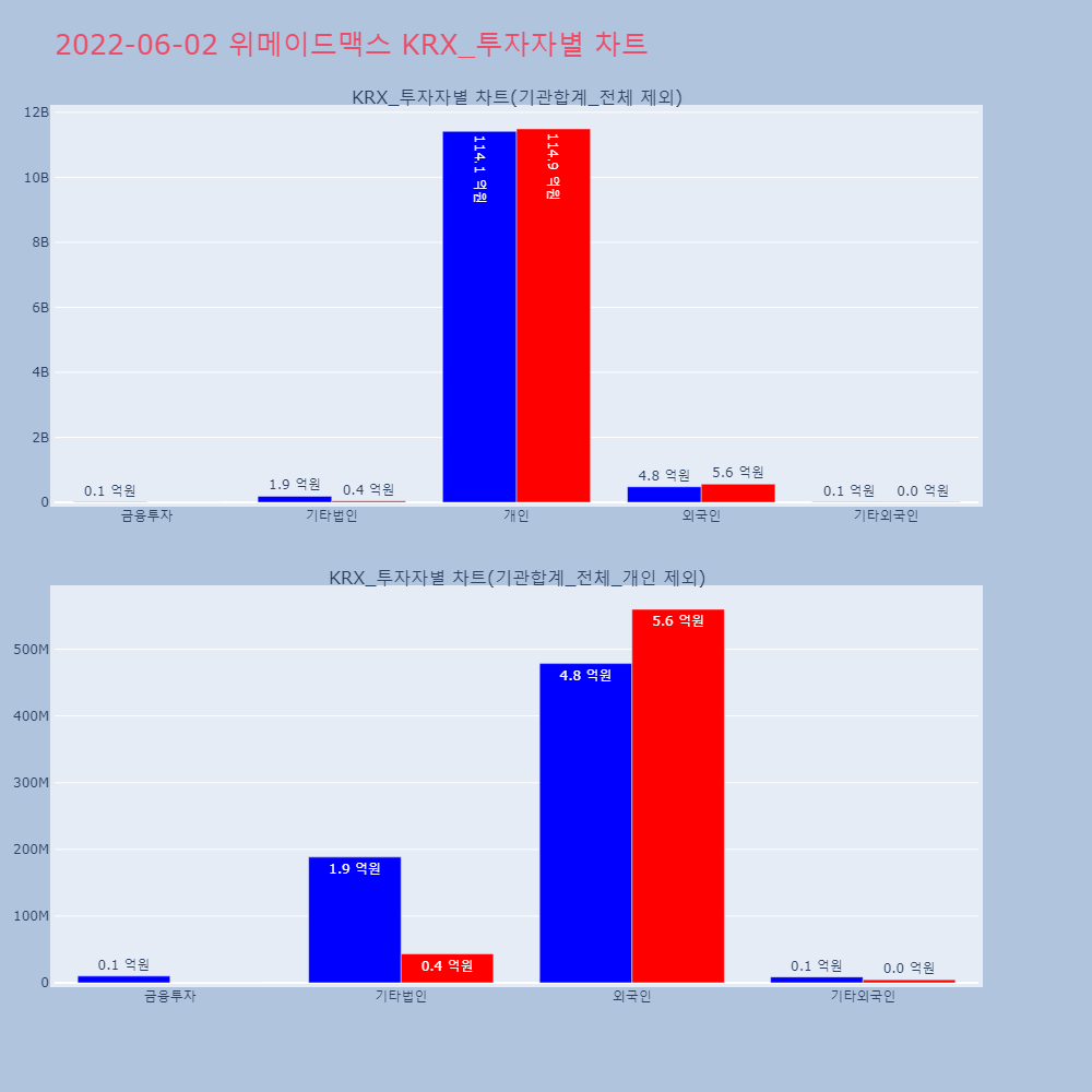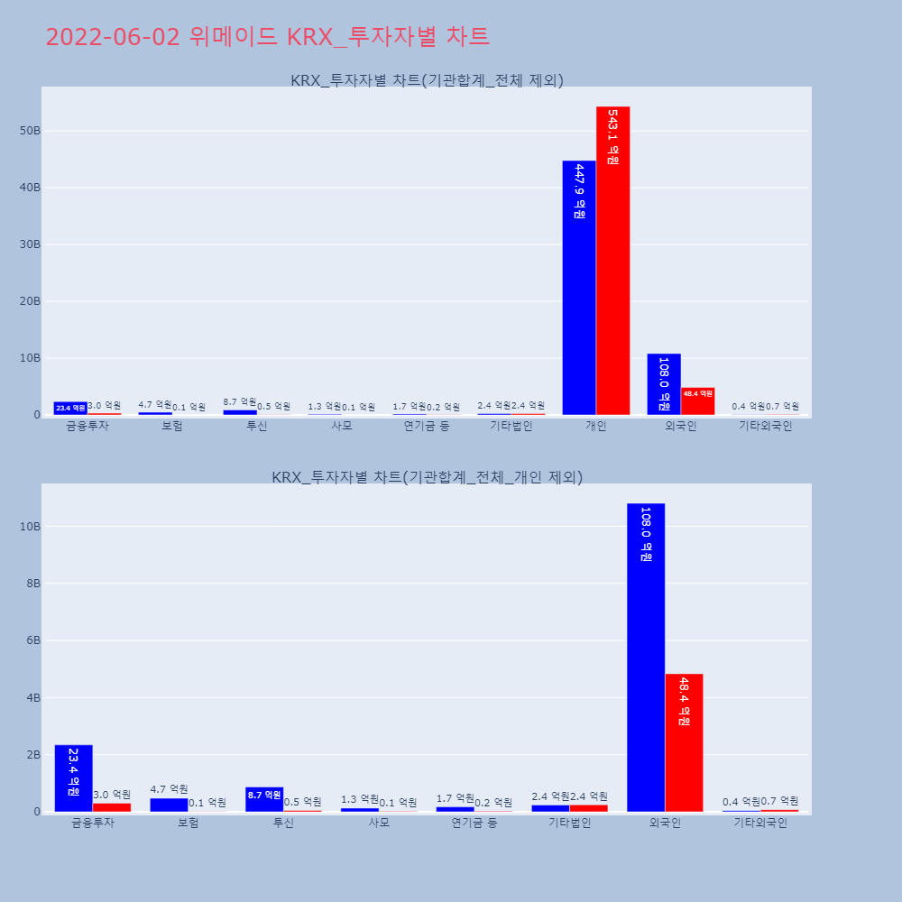 | 외국인 | 132,677 | 59,218 | -73,459 | 10,804,418,900 | 4,835,542,800 | -5,968,876,100 |