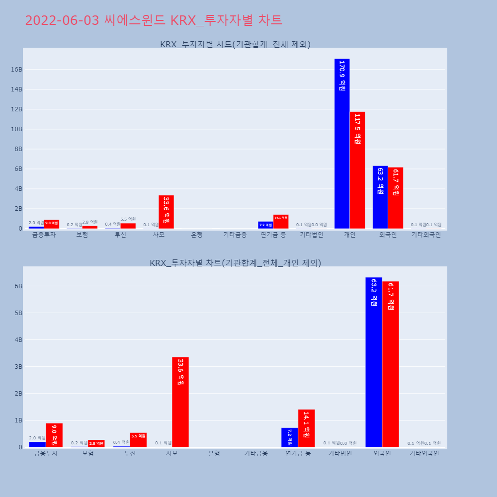 | 투자기관 | 거래량_매도 | 거래량_매수 | 거래량_순매수 | 거래대금_매도 | 거래대금_매수 | 거래대금_순매수 |