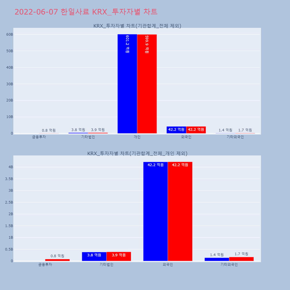 | 투자기관 | 거래량_매도 | 거래량_매수 | 거래량_순매수 | 거래대금_매도 | 거래대금_매수 | 거래대금_순매수 |