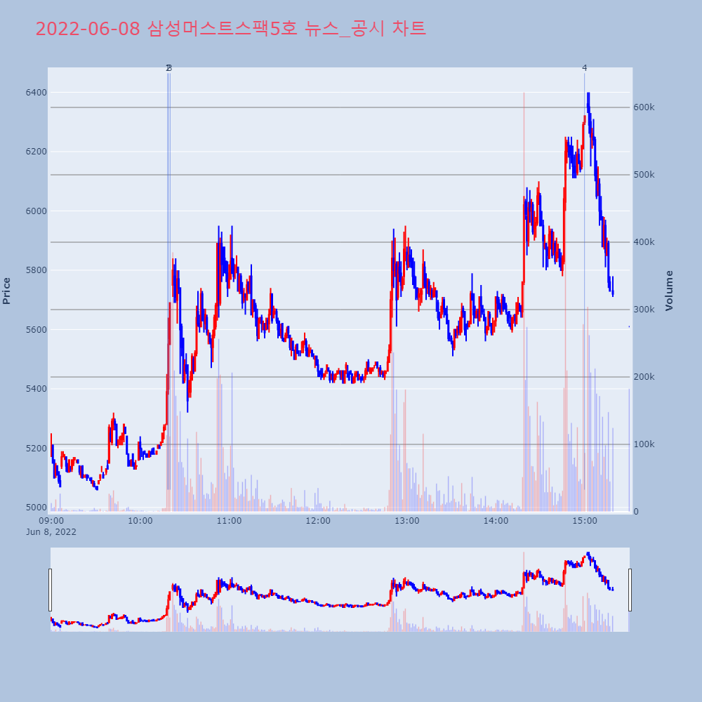 | 3 | 삼성머스트스팩5호, +10.70% VI 발동삼성머스트스팩5호(380320)가 VI가 발동했다. 전 | 조선경제 | 삼성머스트스팩5호 | 2022-06-08 10:20:14 |