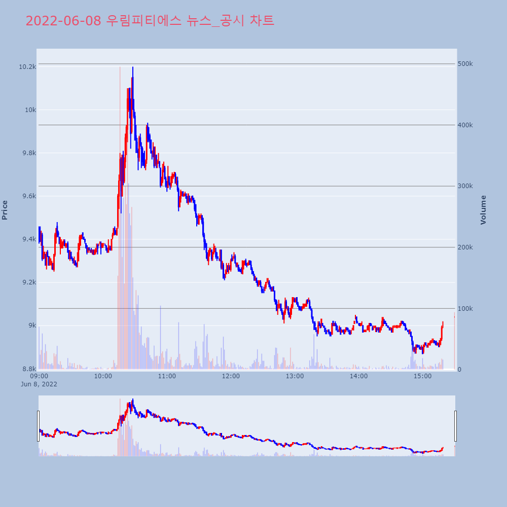 2022. 06. 08 특징주 모비데이즈 세림B&G 우림피티에스
