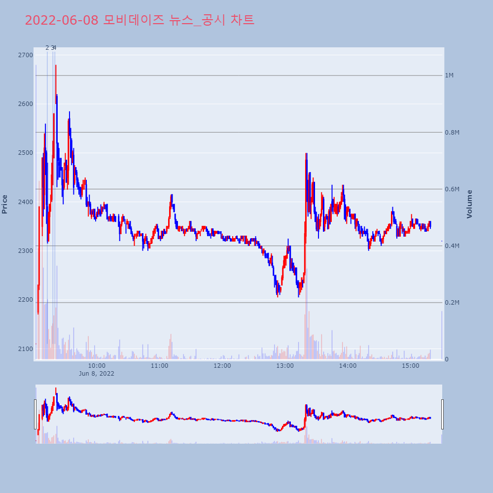 | 2 | [특징주]스팩 흡수합병된 '모비데이즈', 상장 첫날 약세▶ 하이스탁론, 선취수수료 없는 월 0.2%대 최저금리 | 이데일리 | 모비데이즈 | 2022-06-08 09:12:47 |
