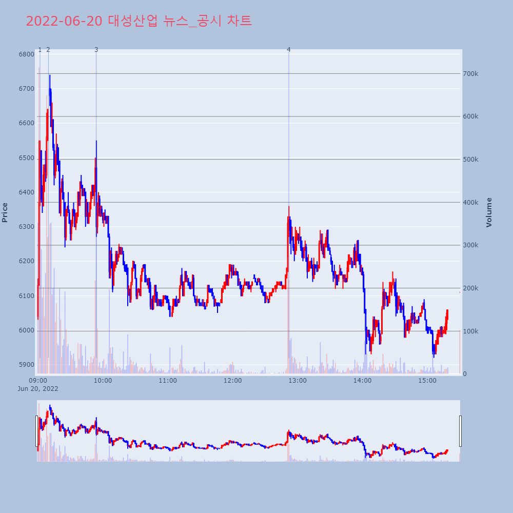 | 2 | 대성산업, +17.52% VI 발동대성산업(128820)이 VI가 발동했다. 전일 대비 | 조선경제 | 대성산업 | 2022-06-20 09:09:41 |