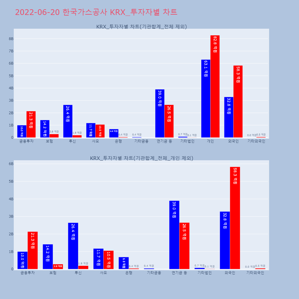 | 투자기관 | 거래량_매도 | 거래량_매수 | 거래량_순매수 | 거래대금_매도 | 거래대금_매수 | 거래대금_순매수 |