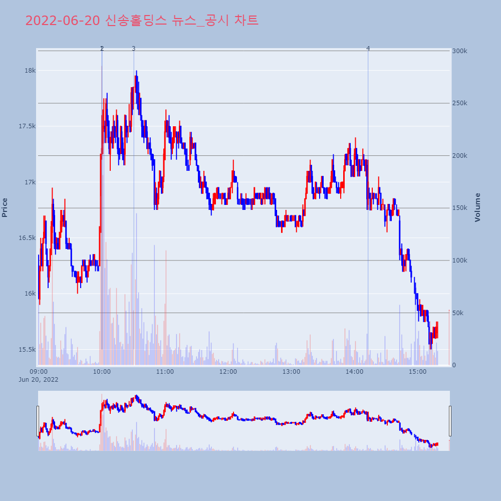 | 3 | 신송홀딩스, +8.84% VI 발동신송홀딩스(006880)가 VI가 발동했다. 전일 대비 | 조선경제 | 신송홀딩스 | 2022-06-20 10:30:30 |