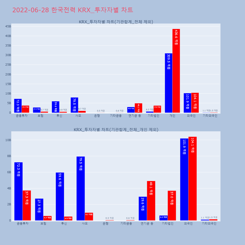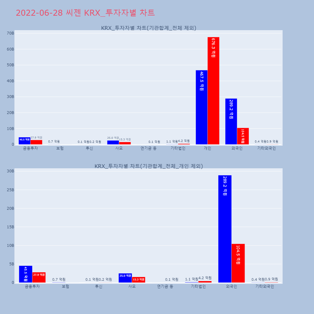 | 투자기관 | 거래량_매도 | 거래량_매수 | 거래량_순매수 | 거래대금_매도 | 거래대금_매수 | 거래대금_순매수 |