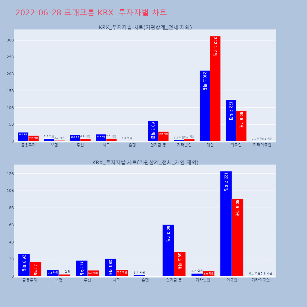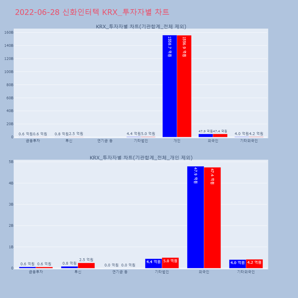 | 투자기관 | 거래량_매도 | 거래량_매수 | 거래량_순매수 | 거래대금_매도 | 거래대금_매수 | 거래대금_순매수 |