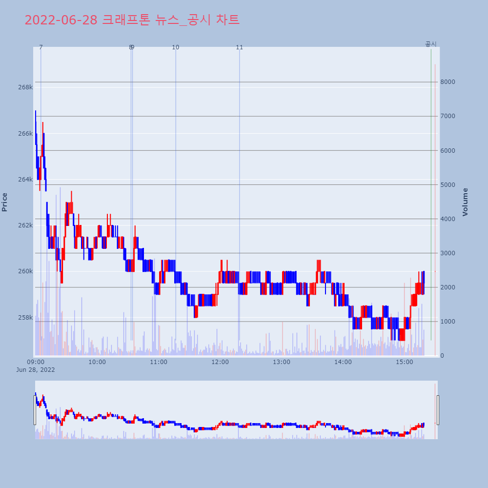 | 7 | [업종 대표주] 게임엔터테인먼트: 크래프톤 -0.75% 출발게임엔터테인먼트 업종 대표주인 크래프톤(259960)이 | 조선경제 | 크래프톤 | 2022-06-28 09:05:08 |