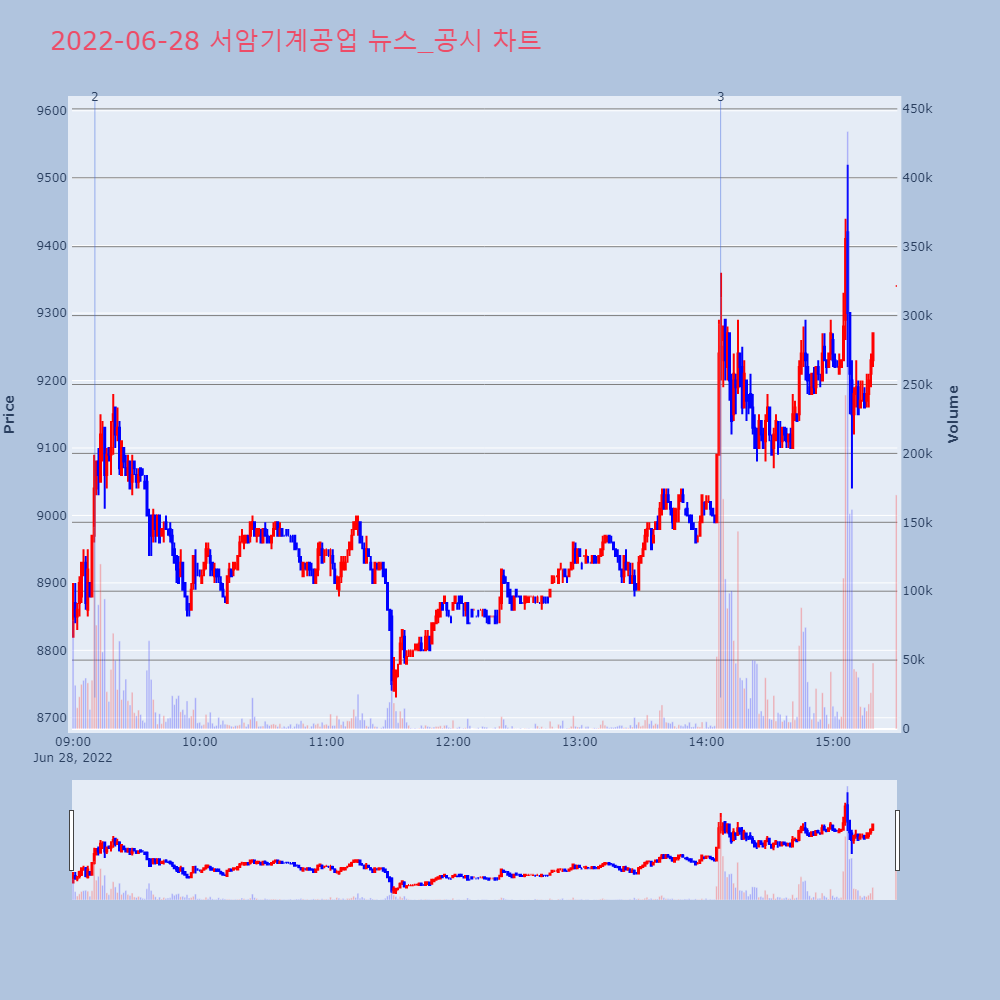 | 3 | 서암기계공업, +5.69% 상승폭 확대서암기계공업(100660)이 상승폭을 확대하고 있다. | 조선경제 | 서암기계공업 | 2022-06-28 14:06:48 |