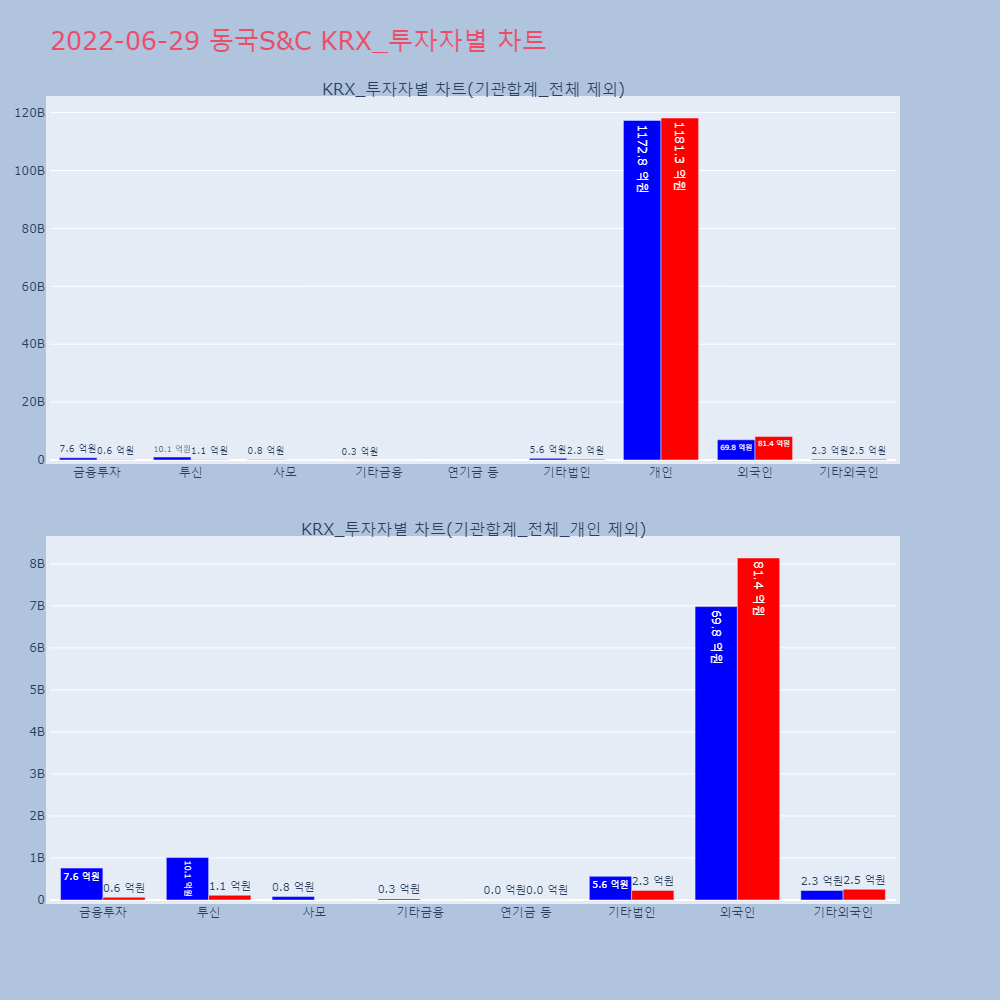 | 투자기관 | 거래량_매도 | 거래량_매수 | 거래량_순매수 | 거래대금_매도 | 거래대금_매수 | 거래대금_순매수 |