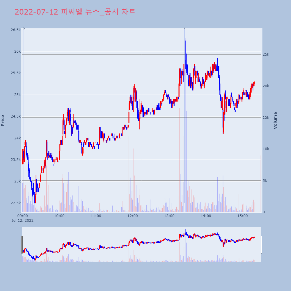 7 | 피씨엘, +13.97% VI 발동피씨엘(241820)이 VI가 발동했다. 전일 대비 1 | 조선경제 | 피씨엘 | 2022-07-12 13:24:55 |