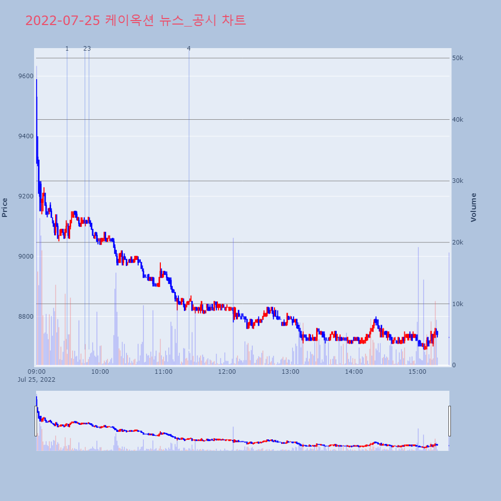 | 2 | [특징주] 케이옥션, 6개월 락업 해제에 장 초반 신저가케이옥션(102370)이 장 초반 낙폭을 키우며 신저가 | 조선경제 | 케이옥션 | 2022-07-25 09:45:43 |