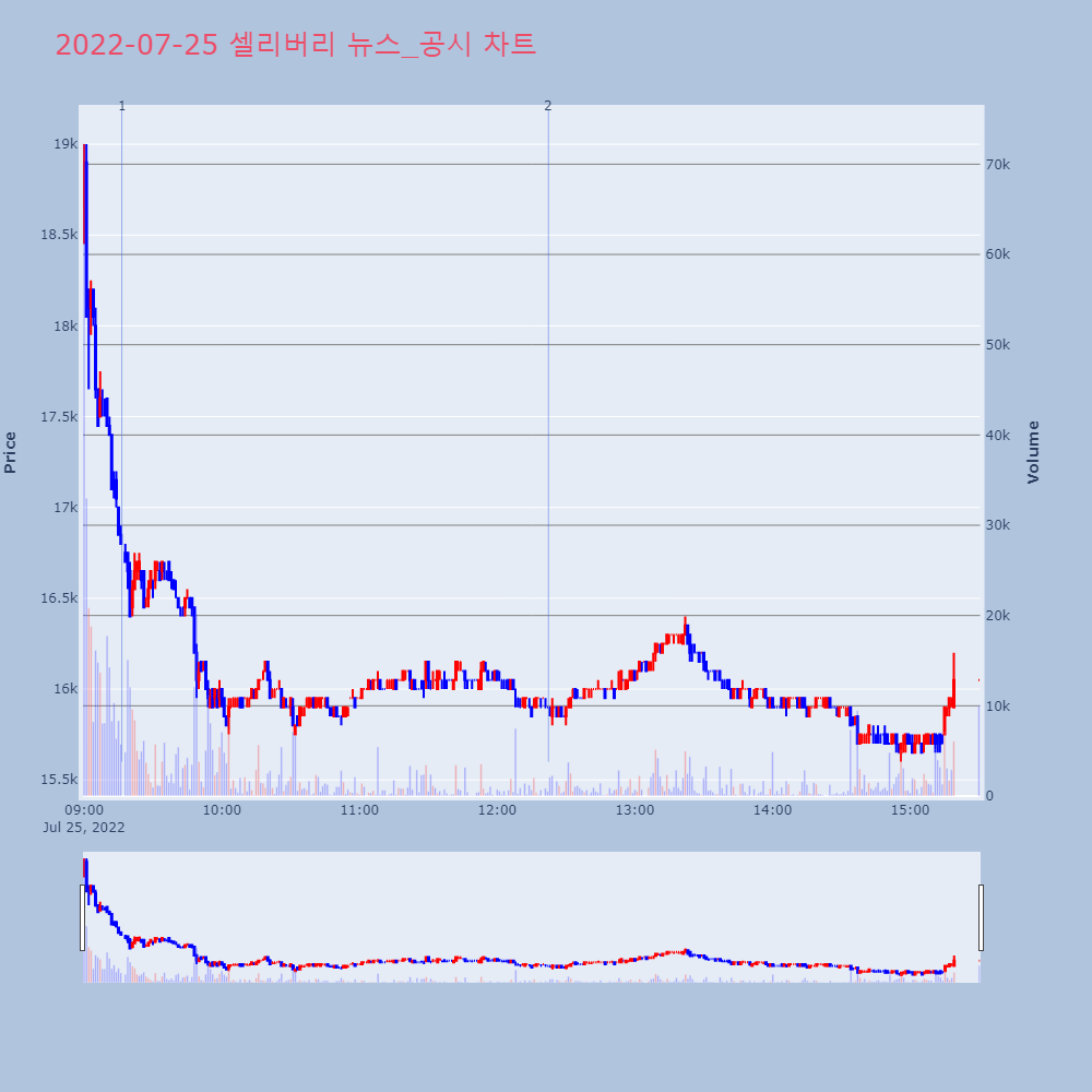 무상증자/자진상장폐지 관 련 검토 사실 없다는 소식 속 급락