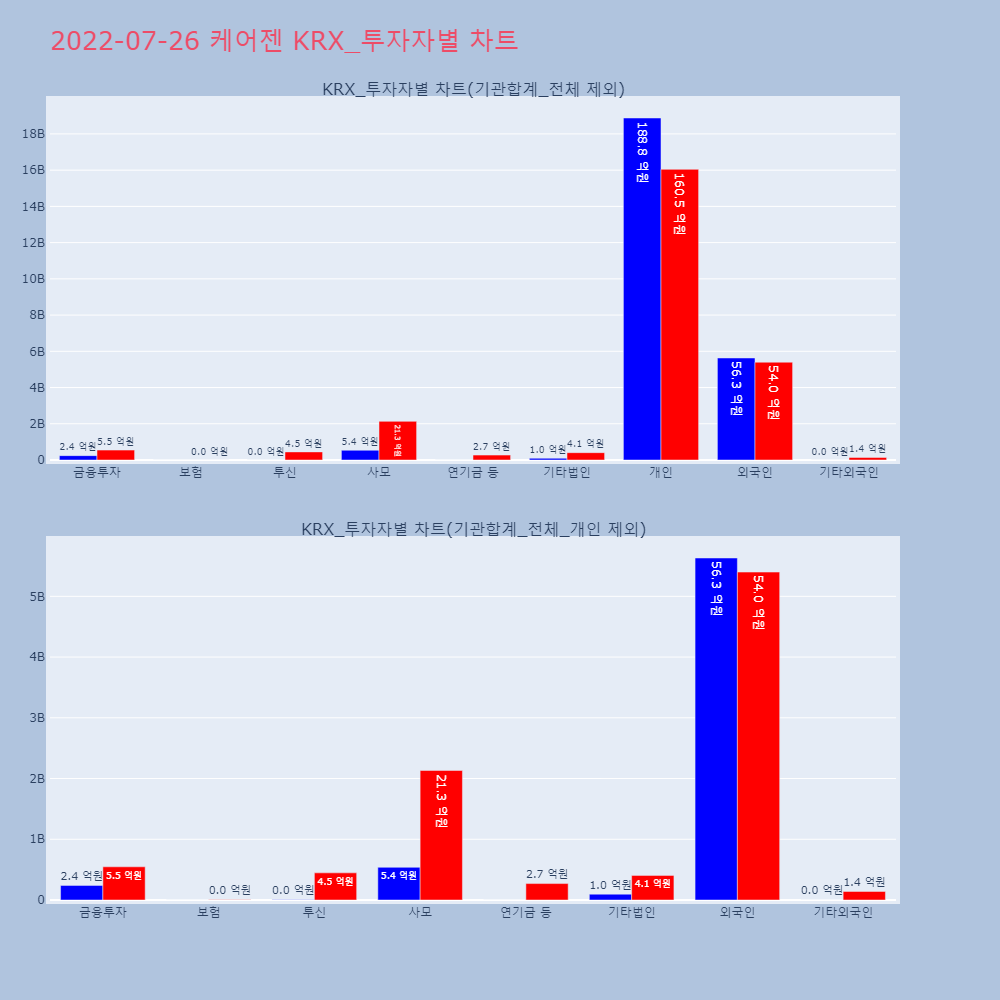 | 개인 | 17,755 | 13,512 | -4,243 | 4,077,119,900 | 3,096,258,400 | -980,861,500 |
