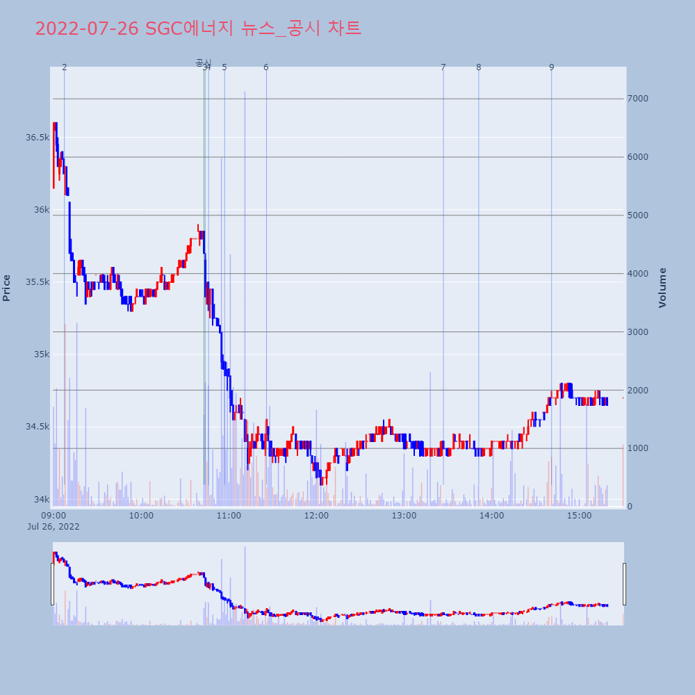 | 7 | [특징주] SGC에너지, 2분기 영업익 급감에 4%대 약세 제목 : [특징주] SGC에너지, 2분기 영업익 급감에 | 인포스탁 | SGC에너지 | 2022-07-26 13:27:00 |