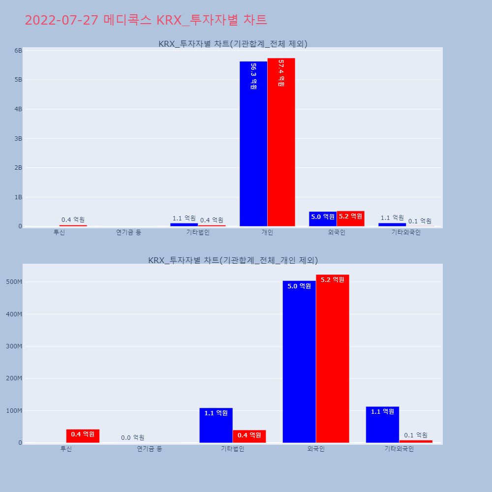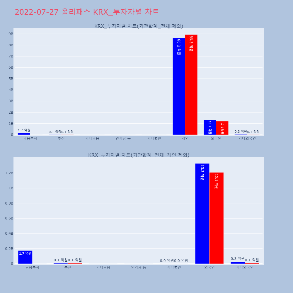 | 투자기관 | 거래량_매도 | 거래량_매수 | 거래량_순매수 | 거래대금_매도 | 거래대금_매수 | 거래대금_순매수 |