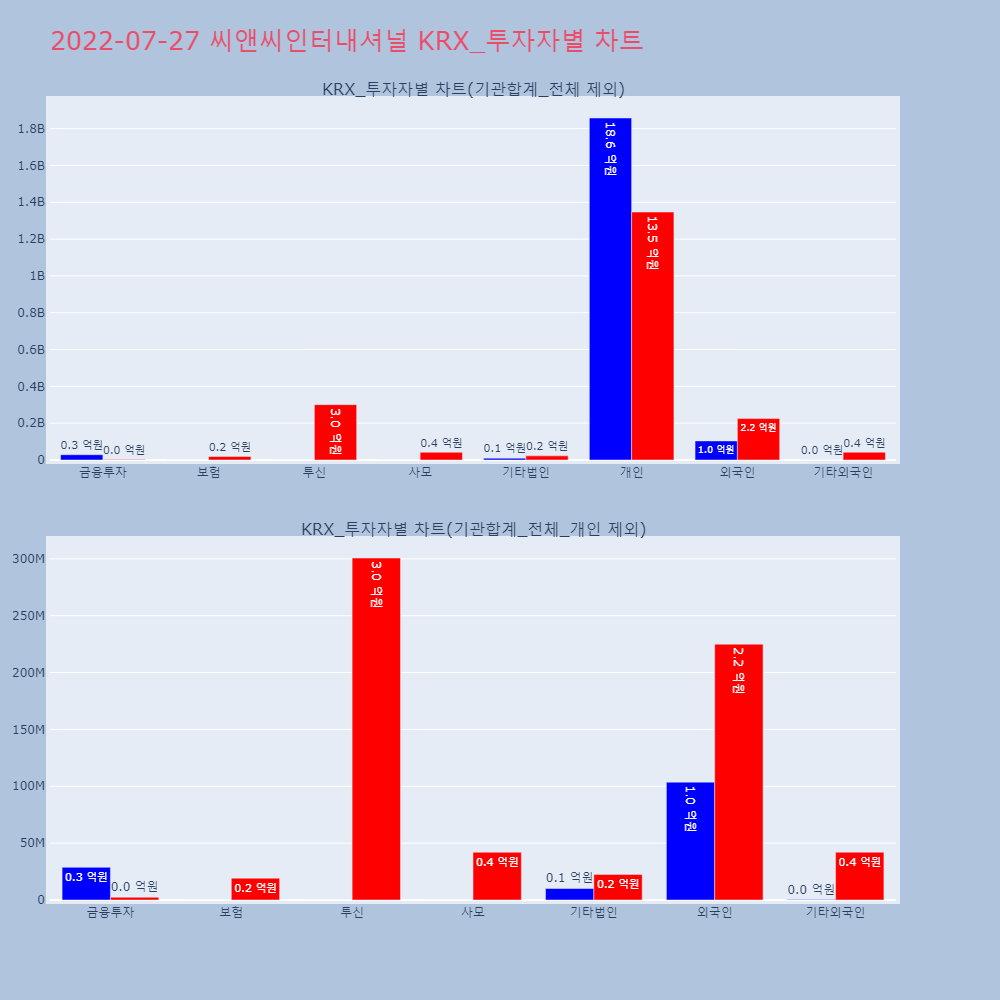 | 투자기관 | 거래량_매도 | 거래량_매수 | 거래량_순매수 | 거래대금_매도 | 거래대금_매수 | 거래대금_순매수 |