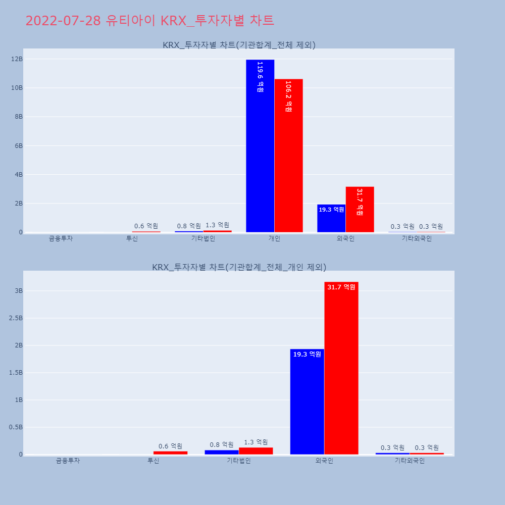 | 개인 | 518,418 | 517,340 | -1,078 | 13,480,965,100 | 13,460,328,700 | -20,636,400 |