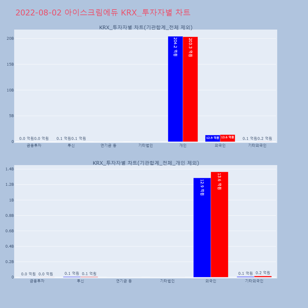 | 투자기관 | 거래량_매도 | 거래량_매수 | 거래량_순매수 | 거래대금_매도 | 거래대금_매수 | 거래대금_순매수 |