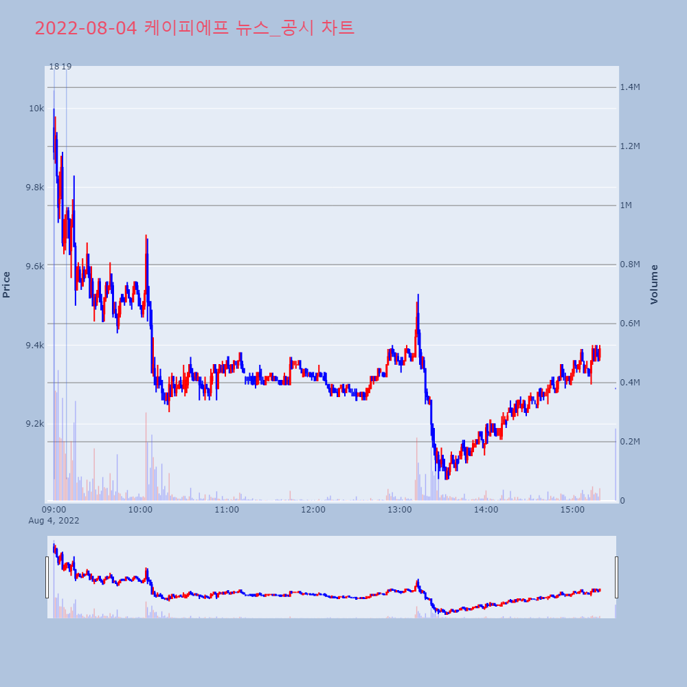 | 19 | '케이피에프' 52주 신고가 경신, 단기·중기 이평선 정배열로 상승세◆ 차트 분석- 단기·중기 이평선 정배열로 상승세 | 한경/증권 | 케이피에프 | 2022-08-04 09:08:45 |