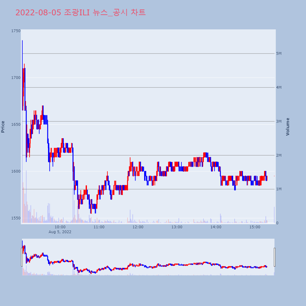 | 1 | [fnRASSI]장마감, 코스닥 하락 종목(조광ILI -24.0% ↓) 05일 코스닥 시장에서 하락한 종목으로 조광ILI(04 | 파이낸셜 | 대성창투 | 2022-08-05 15:38:13 |