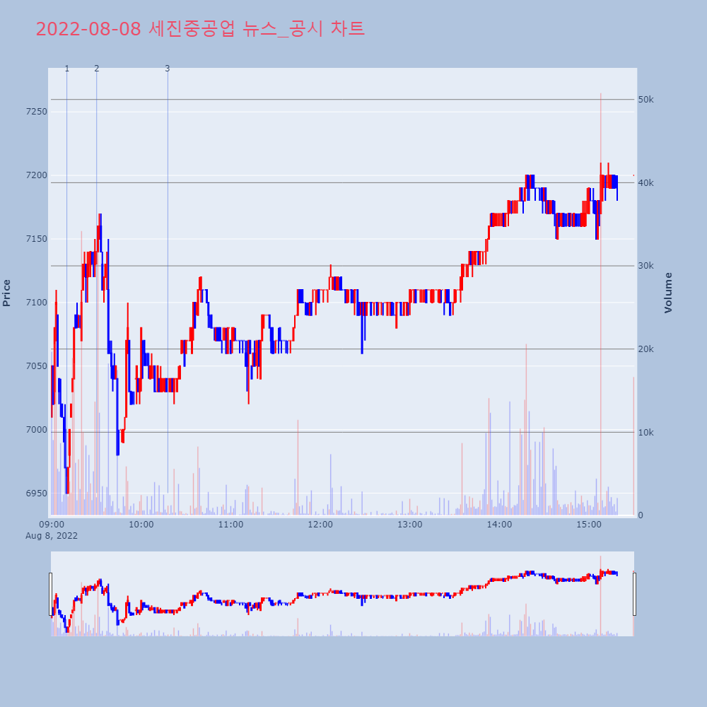 3 | [장중수급포착] 세진중공업, 기관 7일 연속 순매수행진... 주가 +1.44% [서울=뉴스핌] 로보뉴스 = 08일 10시 15분 현재 | 뉴스핌 | 세진중공업 | 2022-08-08 10:17:51 |