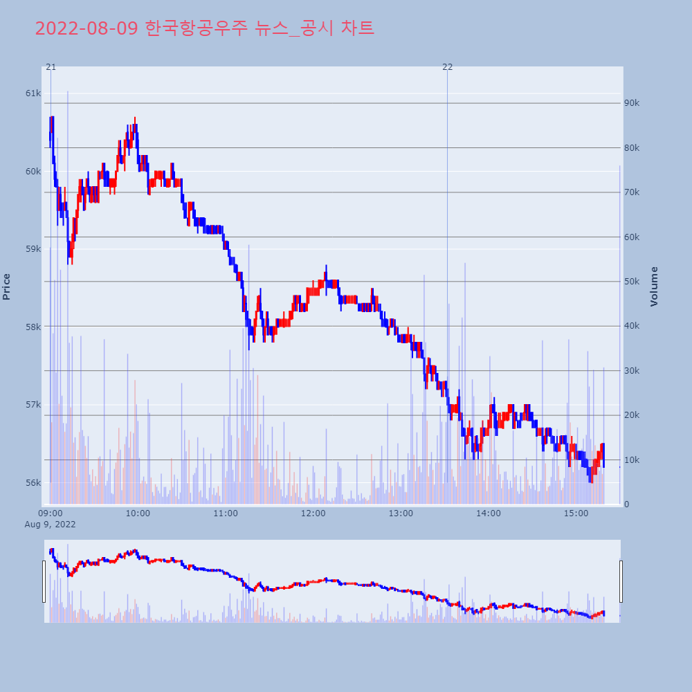 | 5 | [특징주] 한국항공우주, 우주경제 로드맵 관련주 부각에 '신고가' 제목 : [특징주] 한국항공우주, 우주경제 로드맵 관련 | 인포스탁 | 한국항공우주 | 2022-08-08 10:29:00 |
